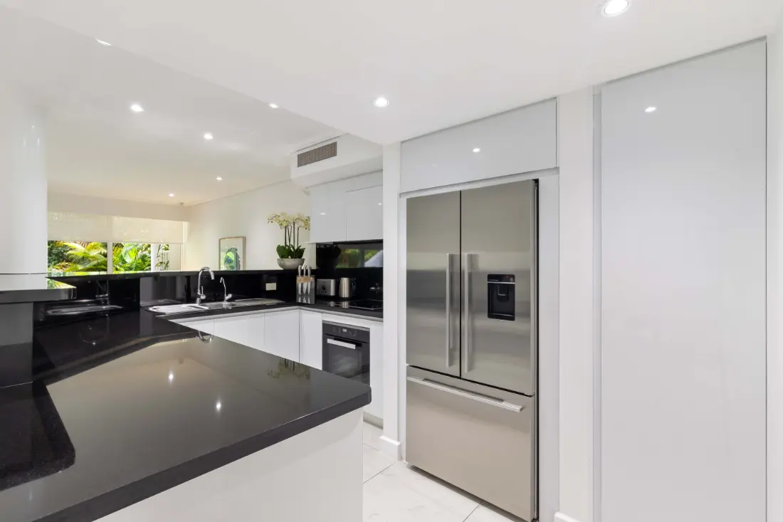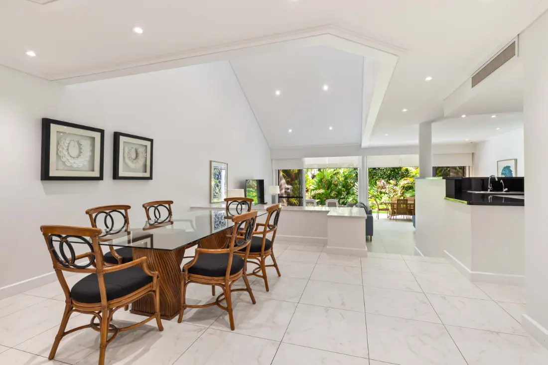 Villa 116 will impress from the moment you enter and have you regret not staying longer. This split level, fully renovated, 2-bedroom villa is in prime position within the Mirage Resort. Stylish and contemporary, it is on the north side of the grounds, close to the resort’s facilities and the iconic Four Mile beach. The open plan layout, complimented by vaulted ceilings, invites natural light. The rooms are generous, instilling a feeling of openness and space.