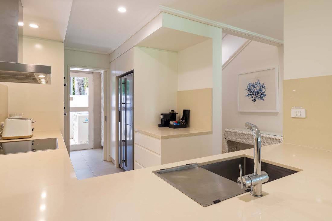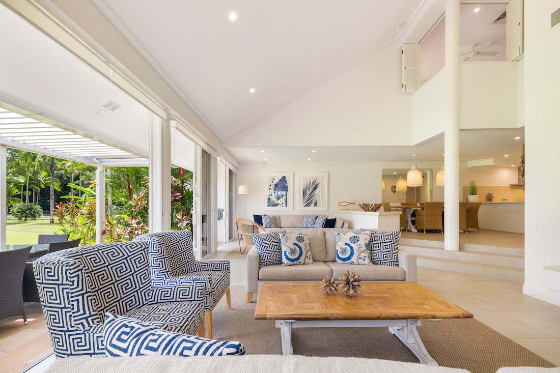 Villa 162 is on the north side of the iconic Mirage Resort. One in a block of just two, it has been fully renovated and backs onto the 5th Fairway. Accentuated by lush surrounds, it conveys a real tropical feel. The iconic Four Mile Beach is a short stroll from the villa, the town’s center is just a few minutes’ drive or a leisurely 20-minute walk. With an array of cafes, restaurants and bars to choose from, you will be spoilt for choice with dining options.