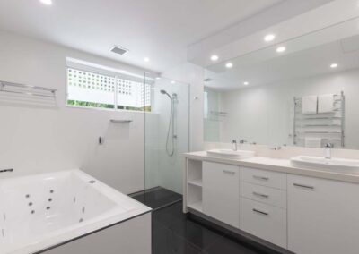 Villa 416 is on the south side of the iconic Mirage Resort grounds. Backing onto the 4th Fairway, its boardwalk approach to the front entrance conveys that real rainforest feel, only to be accentuated by its tropical surrounds. Conveniently located, just minutes from the private, shared villa pool and a short stroll to the central resort’s facilities, this villa is the perfect choice of accommodation and has so much to offer.