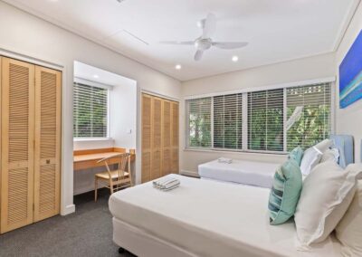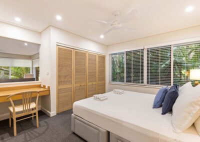 Villa 418 is a stylishly presented 2-story condominium located on the south side of the iconic Mirage Resort. Situated within a private block of four villas, the board-walk approach to the front entrance conveys a feeling of wandering through the rain forest, surrounded by tropical gardens and trees. Well positioned, with sweeping views across the 4th fairway, it’s only a 200mt leisurely stroll to the sandy shores of the iconic Four Mile Beach and main resort facilities.