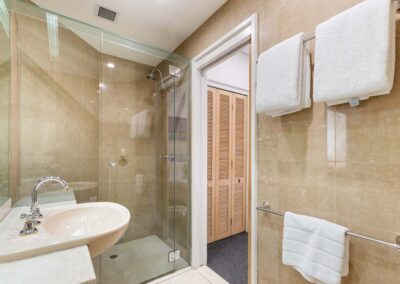 - 3 bathrooms – Master ensuite (shower over tub), 2nd ensuite (Walk-in shower) & downstairs (shower over tub) – hair dryer available.