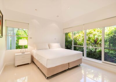 The kitchen and dining areas are spacious and open plan in design, with built-in laundry facilities. The substantial living area can be accessed via a few steps down while high ceilings and walls of panelled glass doors accentuates the feeling of openness. Villa 421 is air conditioned throughout with ceiling fans in all bedrooms, including a large industrial fan in the lounge room, for added comfort and enjoyment.