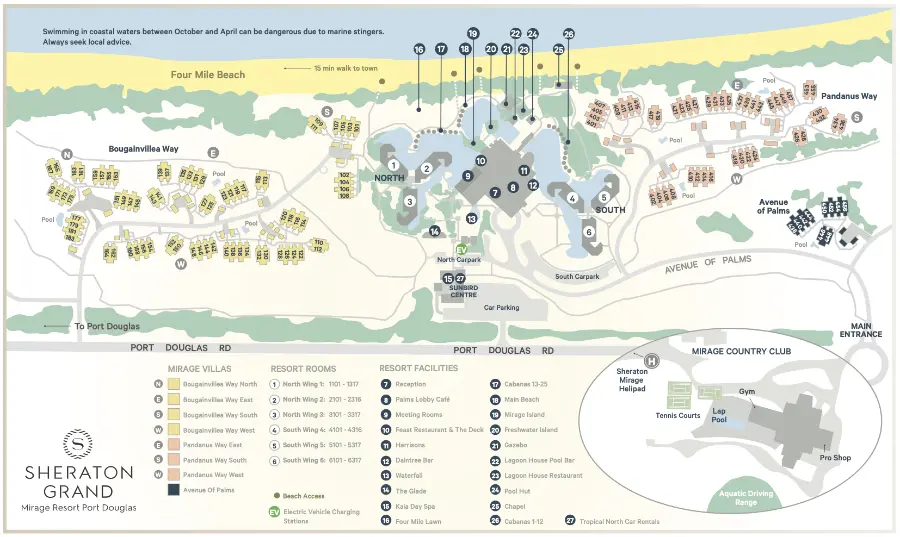See where your preferred villa is located on the map. Whether you’re overlooking the manicured greens of the golf course or lush rainforest foliage, every Mirage Resort Villa offers unparalleled tranquility.